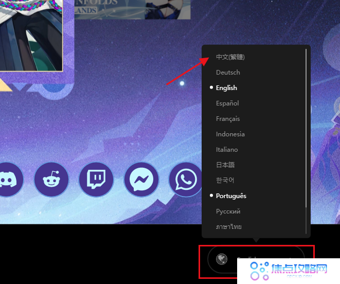 原神国际服官网语言设置: