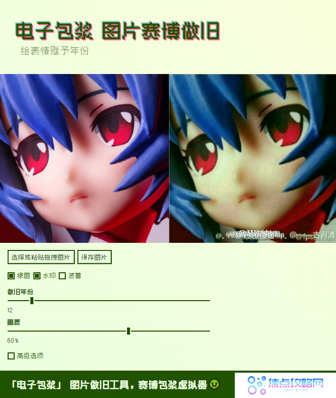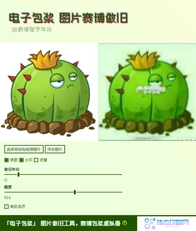 电子包浆生成器是什么?电子包浆生成器是一个可以将高清图片一键制作成怀旧渣画质的工具,通过这个工具做的包浆图片很适合做表情包,选择一张适合的图片,变成包浆画质,再配上文字,做表情包简直完美!有了这个工具之后大家可以自己来制作,超简单!